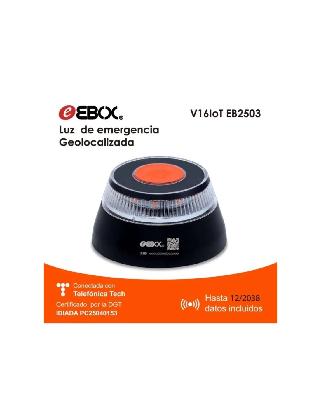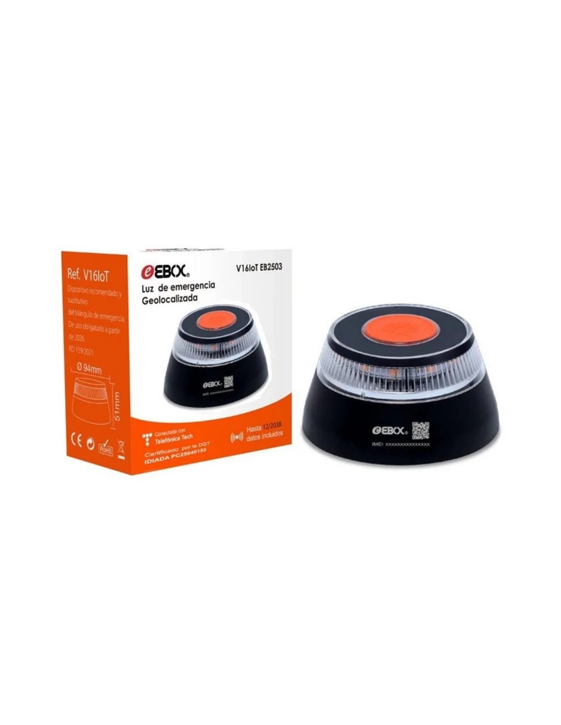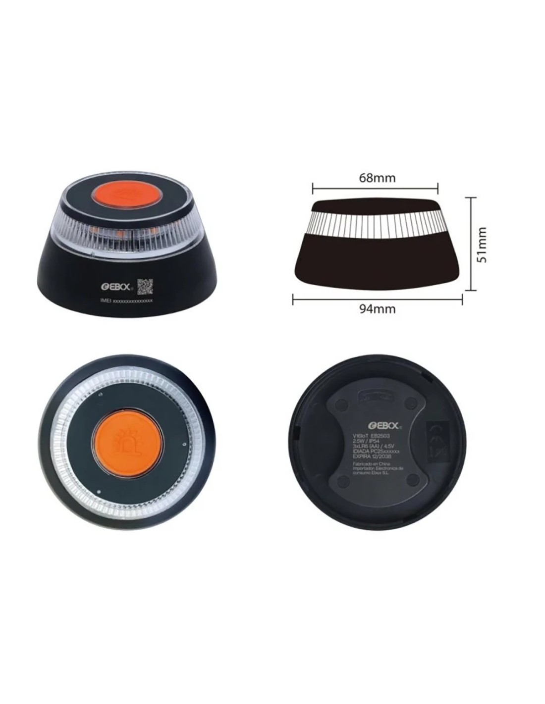 Luz Emergencia V16 Ebox EB2503 Baliza coche Homologada DGT Geolocalizada IoT Base Magnética