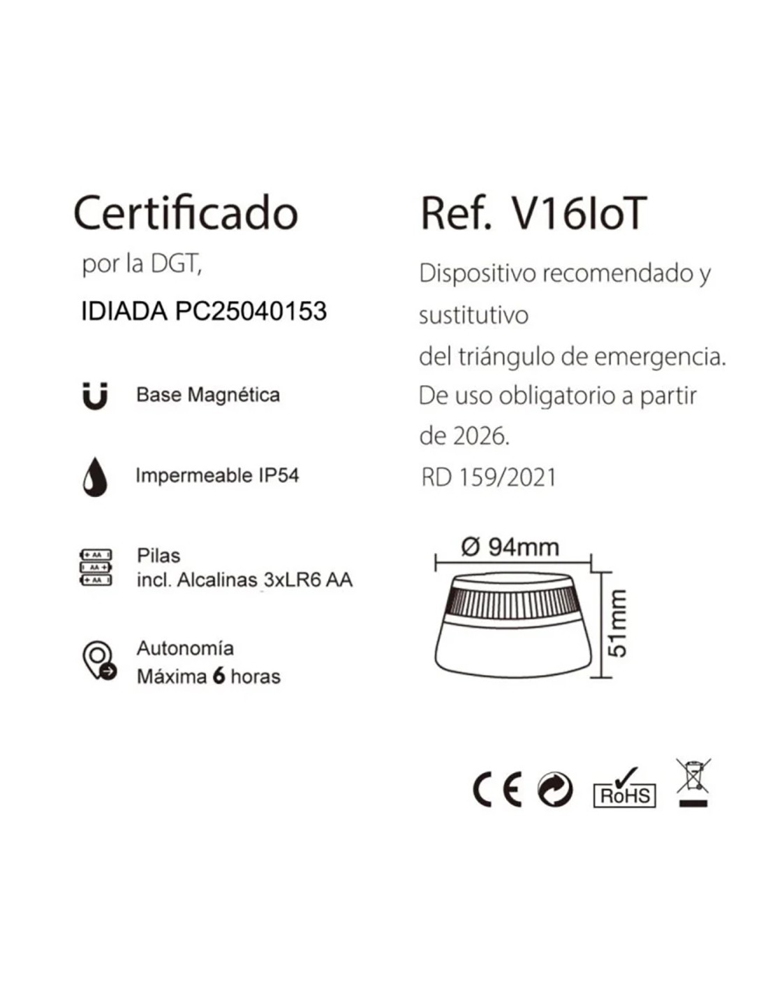 Homologación oficial DGT: Cumple con la normativa V16 para señalización de emergencia.